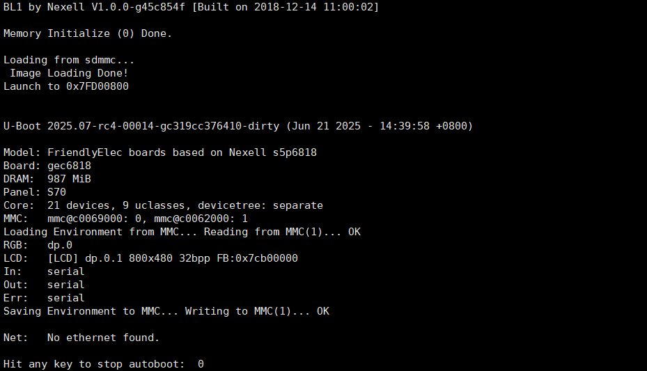 首先将对应的文件拷贝过去,比如U-Boot配置文件、板子、设备树等,我还发现U-Boot主线中有一个相似的开发板NanoPi2(s5p4418),有部分共用的代码,这样工作量就相对小了一点点。然后发现源参考U-Boot把很多配置写进include/configs/s5p6818_gec6818.h了,和defconfig中的一些配置有重合,需要将其注释掉,并对比相应配置,添加进defconfig中。
