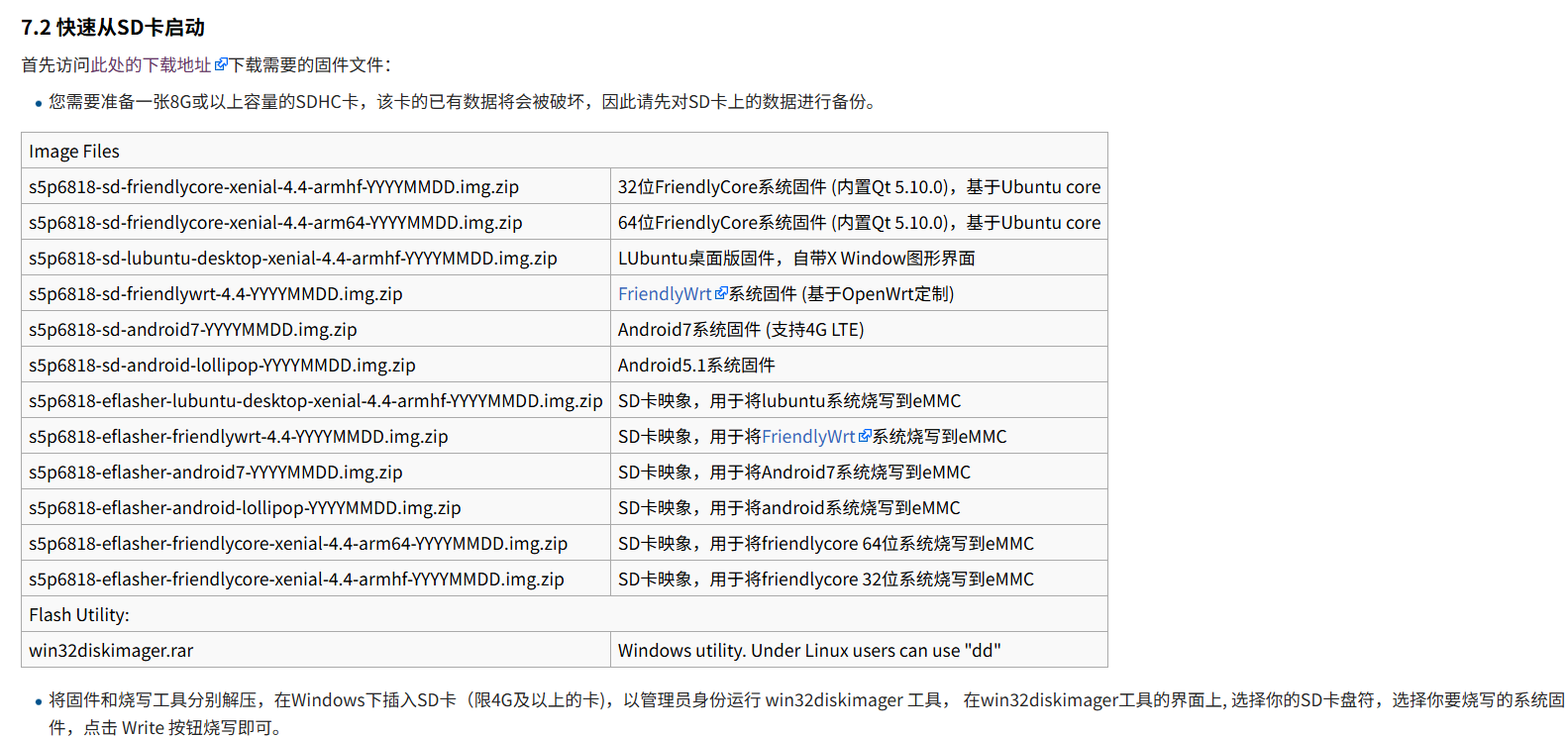FriendlyElec Downloads,文件为s5p6818-sd-friendlycore-xenial-4.4-arm64-YYYYMMDD.img.zip